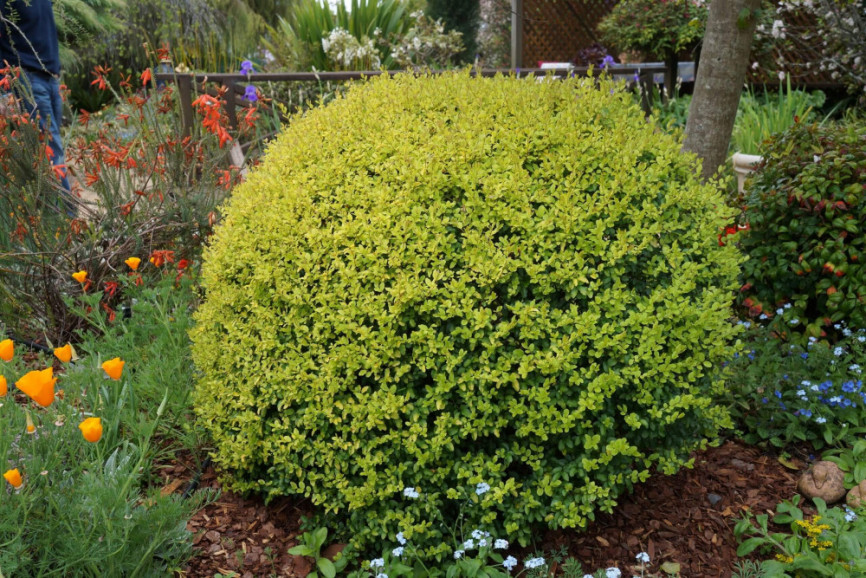 Полувечнозелёный, вертикально растущий крупный кустарник, широкий, густоразветвлённый. Высота 3-4 м, ширина 1,8-2 м. Годовой прирост в высоту 15-20 см, в ширину 15 см. Листья расположены супротивно, эллиптические или продолговато-овальные, длиной 3-7 см, тёмно-зелёные с широкой жёлтой каймой. Некоторые листья наполовину или полностью жёлтые, осенняя окраска части листьев бронзово-жёлто-зелёная. Кремово-белые кистевидные соцветия длиной до 10 см появляются в июне. Созревание плодов приходится на начало осени. Плоды – несъедобные ягоды черничного цвета. чаще всего применяют для создания живых изгородей. Этот выносливый кустарник способен органично вписаться в групповую смешанную композицию из многолетних растений. Прекрасно смотрится он и в качестве солиста.