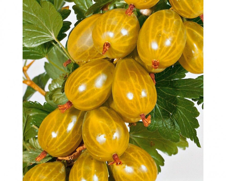 Крыжовник обыкновенный "Русский желтый" очень популярный сорт среди садоводов России. Свою любовь получил благодаря очень вкусным и качественным ягодам и высокой устойчивости кустарника к условиям окружающей среды. Это небольшой кустарник с раскидистыми среднерослыми побегами, которые придают округлую форму крыжовнику. Ягоды овальной формы янтарного цвета, довольно крупные долго весят на ветках, практически не осыпаются. Мякоть сочная, сладкого вкуса с приятной кислинкой. Сорт среднего срока созревания. В уходе крыжовник «Русский жёлтый» неприхотлив: ему требуется регулярный полив, санитарная обрезка, удобрение и подкормка куста.