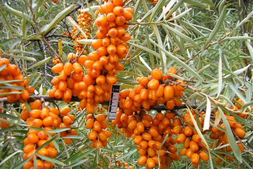 Это пышный куст, не имеет колючек, высота его достигает 4м, ветви гибкие. Листики узкие, зеленые с наружи внутри с серым оттенком. Начинает цвести в начале мая, зацветает раньше, чем появляются листики, соцветия белого цвета имеют приятный аромат. Плоды массой 0,7 г, овальной формы, ярко-оранжевые, сочные, сладкие, отличного вкуса. Отрыв легкий. В плодах содержится: сахара 9,71%, кислоты 1,14%, витамина С до 85 мг%. Не поражался болезнями и не повреждался вредителями. Средняя урожайность 69,3 ц/га. Поспевают в конце августа, урожайность высокая.