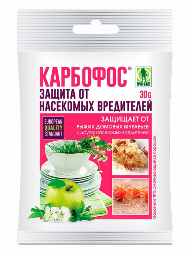 Карбофос- это умеренно токсичный пестицид, который уничтожает пилильщика, долгоносика, тлю, плодожорку, паутинного клеща, клопов и листогрызущих. Обработку следует производить в виде опрыскивания и раствор использовать сразу после приготовления. Воду в карбофос нужно добавлять постепенно, постоянно помешивая, доводя до однородной суспензии.
