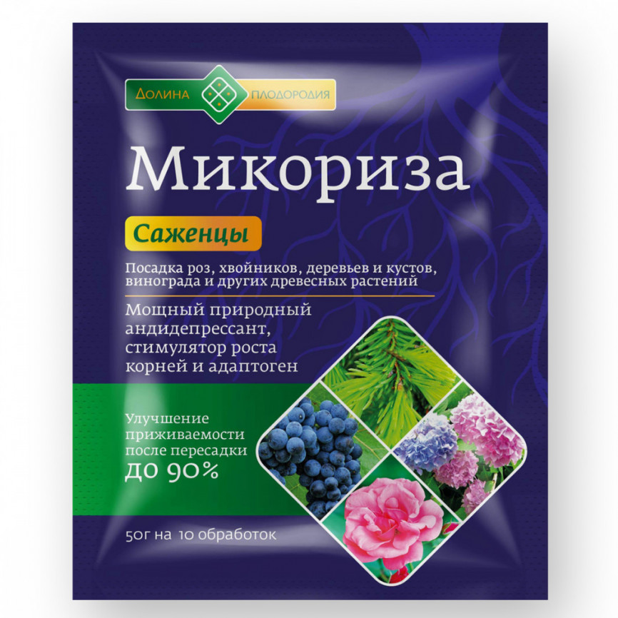 Микориза Долина Плодородия - препарат для подкормки овощных, цветочных и декоративных растений. Рекомендован к использованию на любых стадиях роста и развития саженцев: при высадке, проведении пикировки, прививки, обрезки. Представляет собой смесь почвенных грибов и корней растений, вступивших с ними в симбиоз. Не подходит для маревых и крестоцветных видов, которые не взаимодействуют с мицелием.