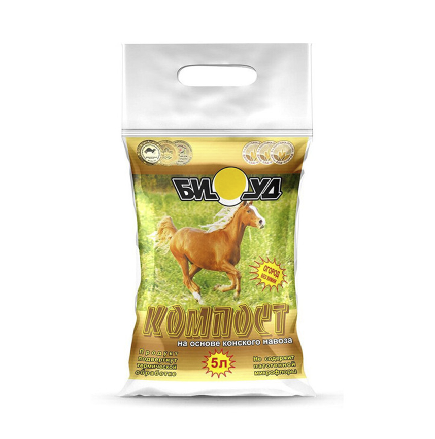 Компост БИУД Конский — эффективное органическое удобрение на основе конского навоза, предназначено для активного развития полевых и овощных сельскохозяйственных культур, плодовых, ягодных деревьев и кустарников, комнатных растений, зеленых культур, декоративных, ягодников и других растений.